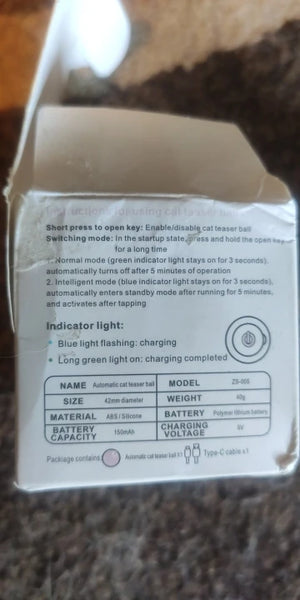 The Smart Cat Play Ball provides up to 60 minutes of continuous play on a full charge, ensuring your cat stays entertained.