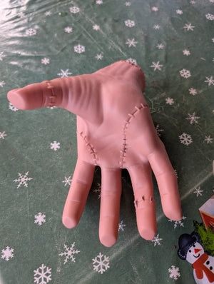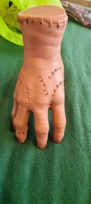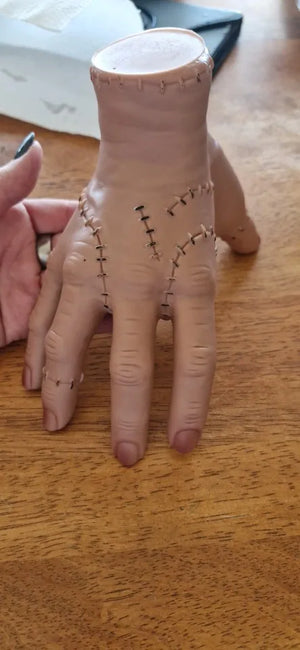 Add a touch of intrigue to any room with a realistic hand prop that captures the essence of the Addams Family's iconic character. Perfect for fans and those seeking a unique decorative piece, this hand brings the thrill of the show right into your home.